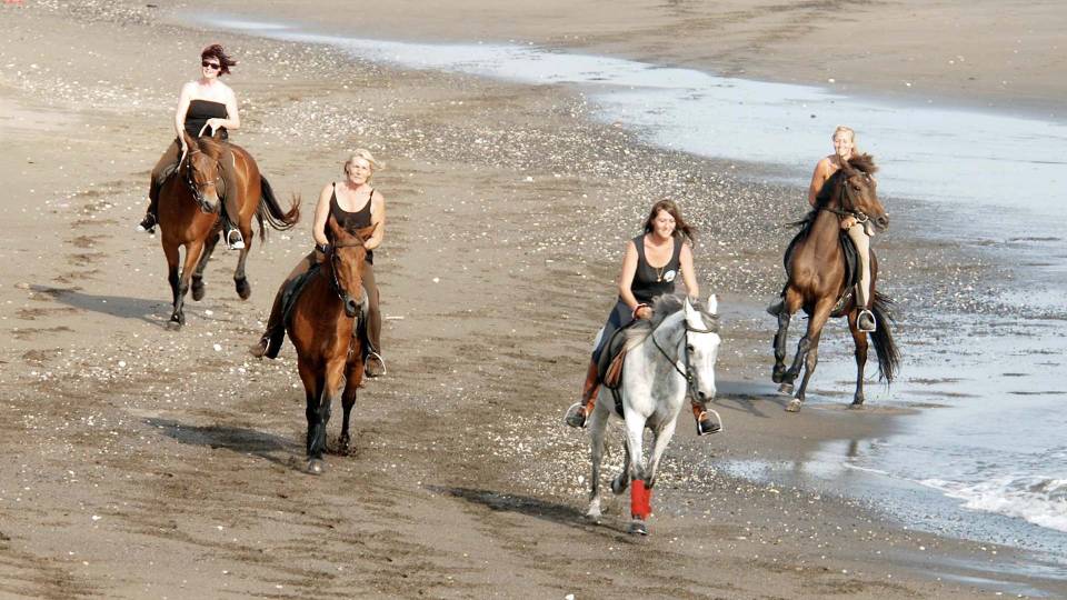 Bali Horse Riding Tour is a Bali Adventure Tour to enjoy horseback riding adventure in Bali passing beautiful rice terrace and is a natural Balinese experience with a mystic ride on track. Is great experience during your holiday in Bali Islands by try our Horseback riding tour packages in Ubud. You will ride slow and gentle pace assist by our professional horseback riding guide, on the way you will see the beautiful scenic of Balinese Village Compound, then we will ride through the tropical forest, beautiful river, then on the way back to horse stable we will passed the beautiful and amazing view of rice paddy. Then we take break near rice field and having fresh coconut water in the middle of rice field near the temple. Then after finish taste the delicious fresh coconut water, we will heading back to horse stable with bring unforgettable moment during the ride.