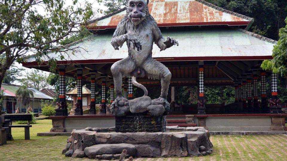 The total size of this forest, temple and its supporter facility is about 12 ha. In this forest, there is a temple called Alas Kedaton Temple and owns the natural environments that is looked green with its fresh air and create the calm, quite and holy atmosphere. The monkeys in Alas Kedaton Temple are very tame and free gallivanting in temple yard, so that the calm atmosphere is sometime solved by noise voice of the monkey, which are playing around and scrambling of food.